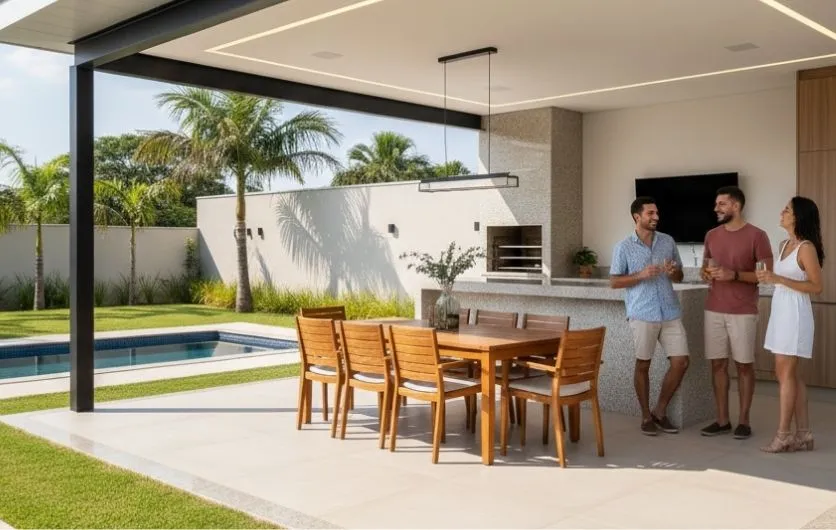 Investir em uma cobertura termoacústica na área de lazer não é apenas sobre conforto, é sobre valorização imobiliária. Casas com áreas gourmet funcionais e termicamente agradáveis são muito mais disputadas no mercado de Goiânia e Brasília.